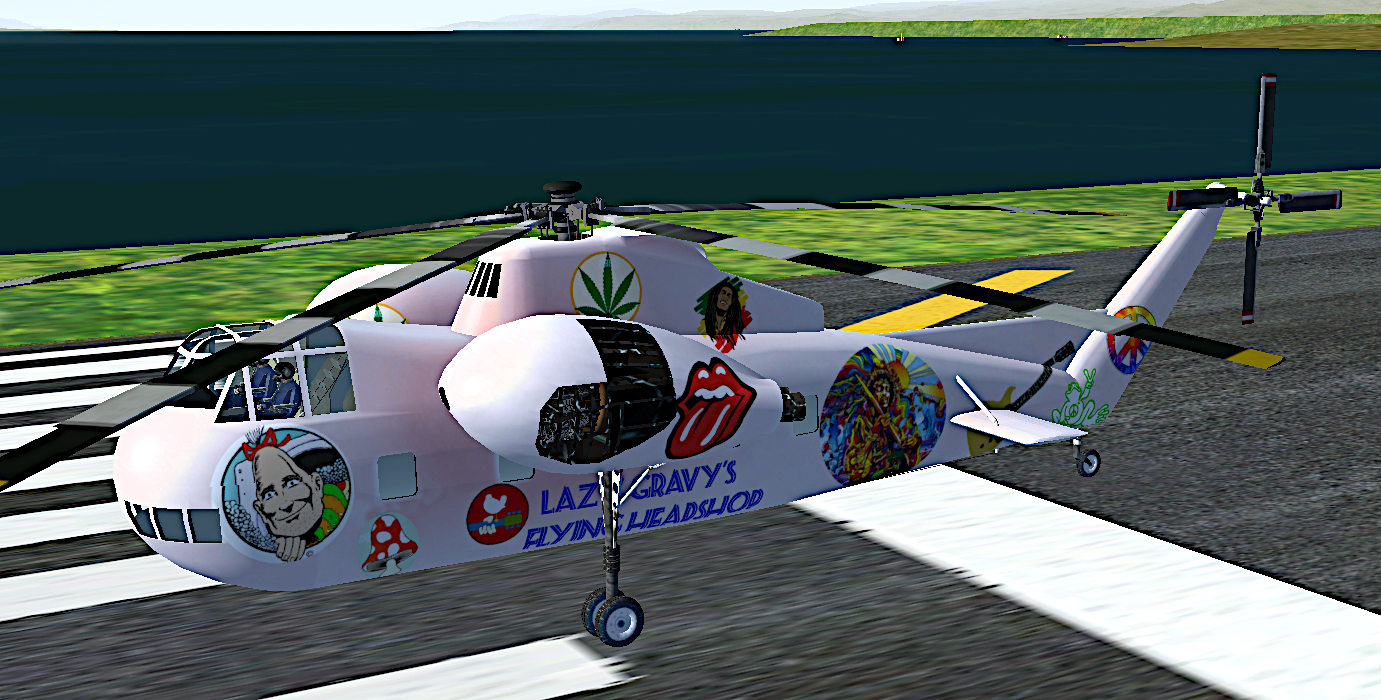 This one is sillier yet: an S-37 (also through the courtesy and skill of M. Baranger, and it’s quite fun to fly besides) with a Cheech & Chong-inspired livery. In 1973-4 I was a great fan of “The General Store,” the best “Head Shop” I knew in Baton Rouge, LA, USA, at the time. This dumb and unfinished S-37 reflects the General Store’s general vibe: